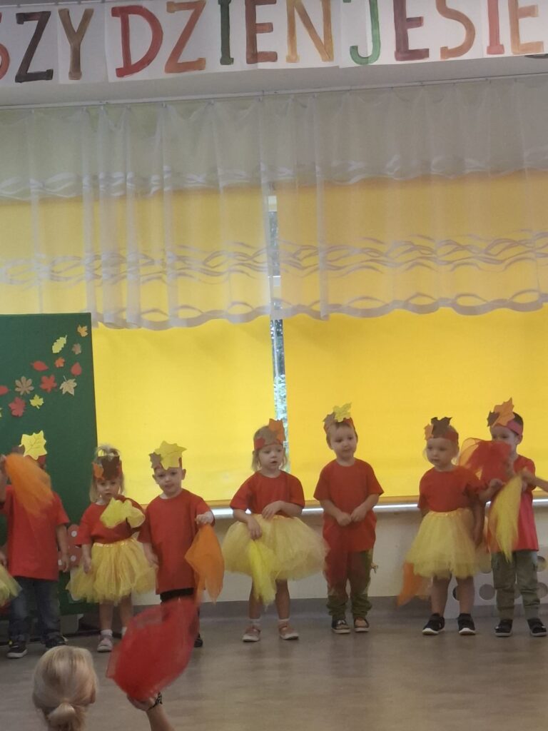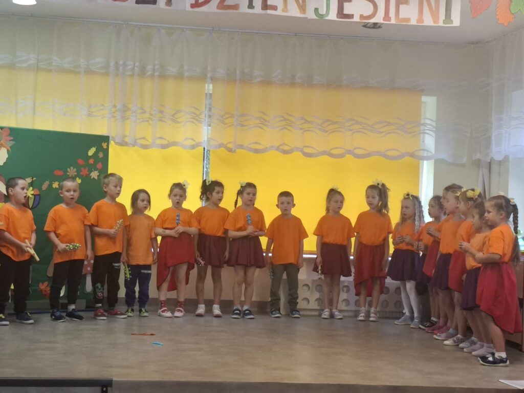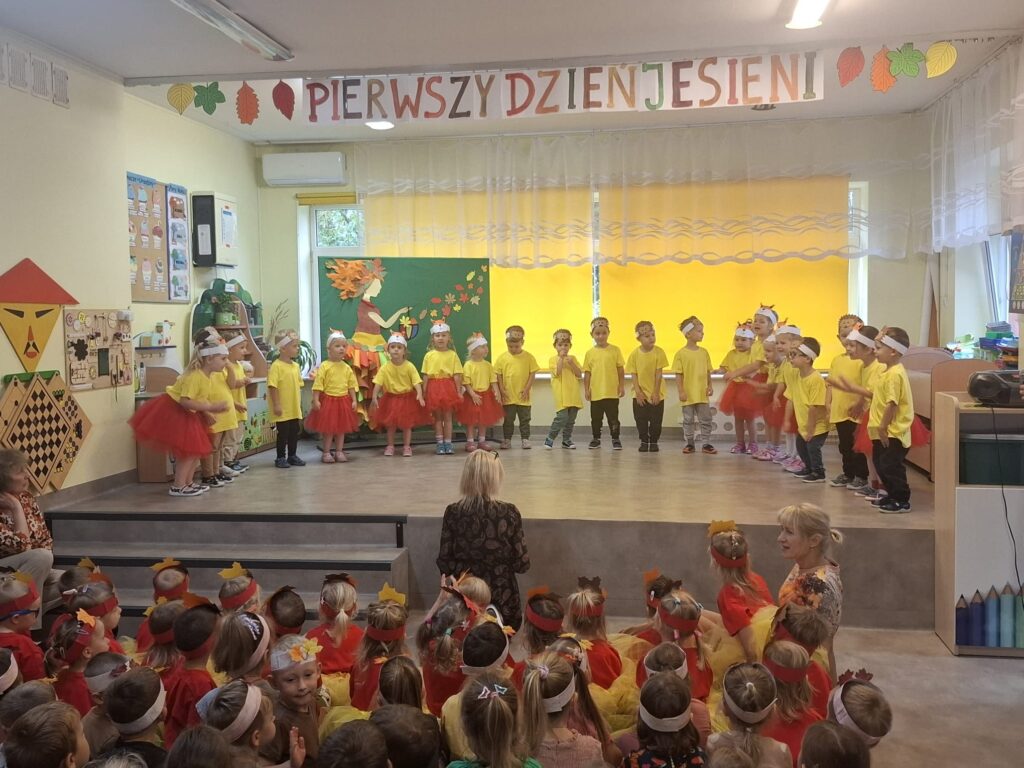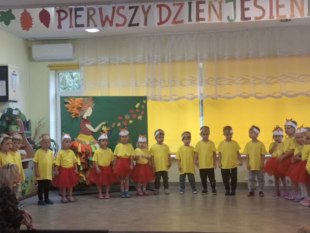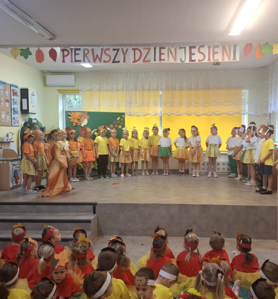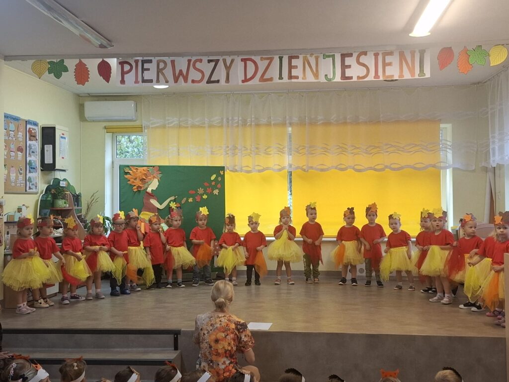 Dzisiaj nasze przedszkolaki przywitały Jesień piosenkami, tańcami, wierszykami i graniem na instrumentach podczas festiwalu artystycznego „Pierwszy Dzień Jesieni”. Nasi mali artyści nie tylko zaśpiewali i zatańczyli ale także pięknie wyglądali. Było u nas tak kolorowo jak na tą porę roku przystało- widać że to już Jesień. Zachęcamy do obejrzenia zdjęć z tego wydarzenia.