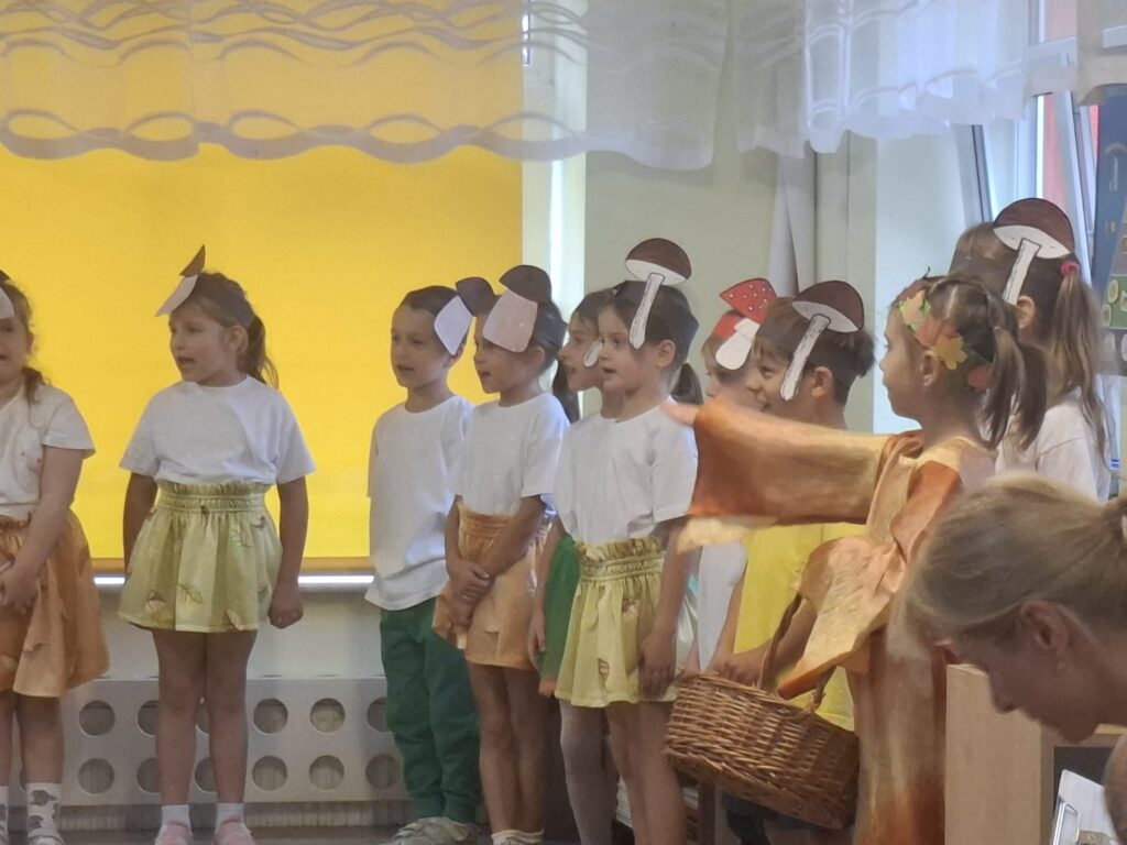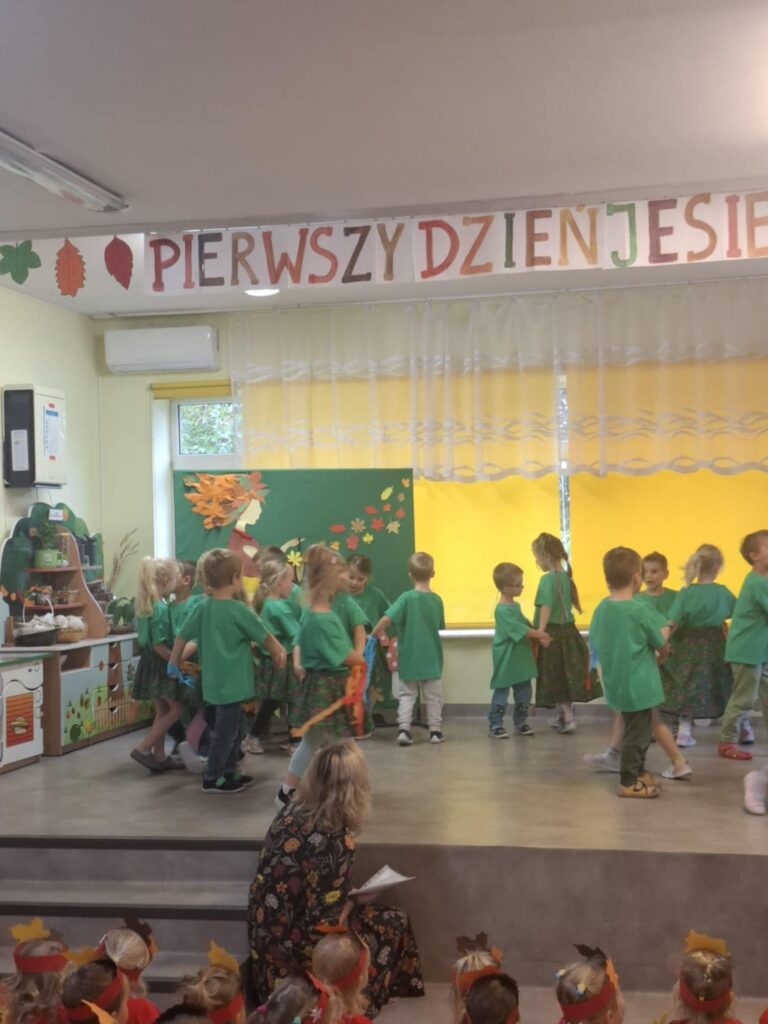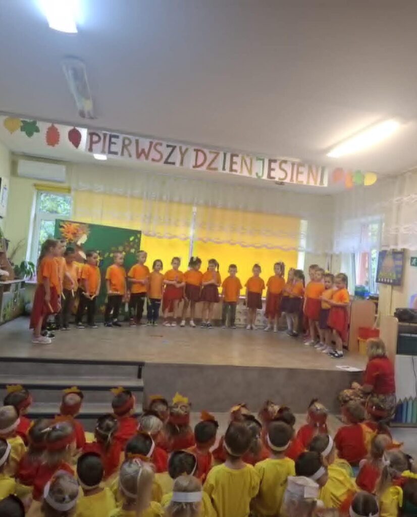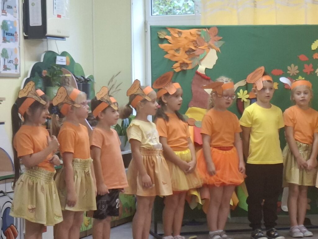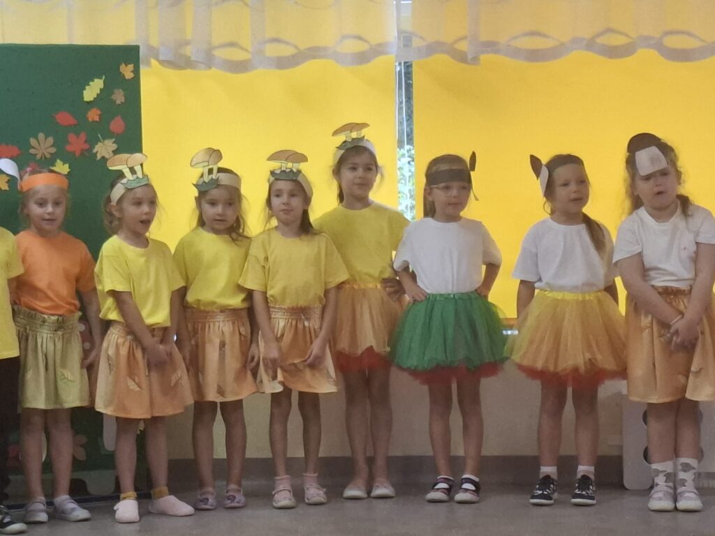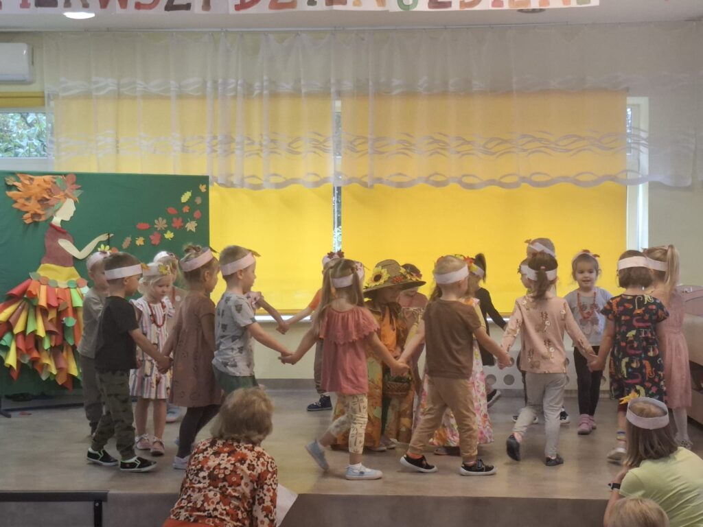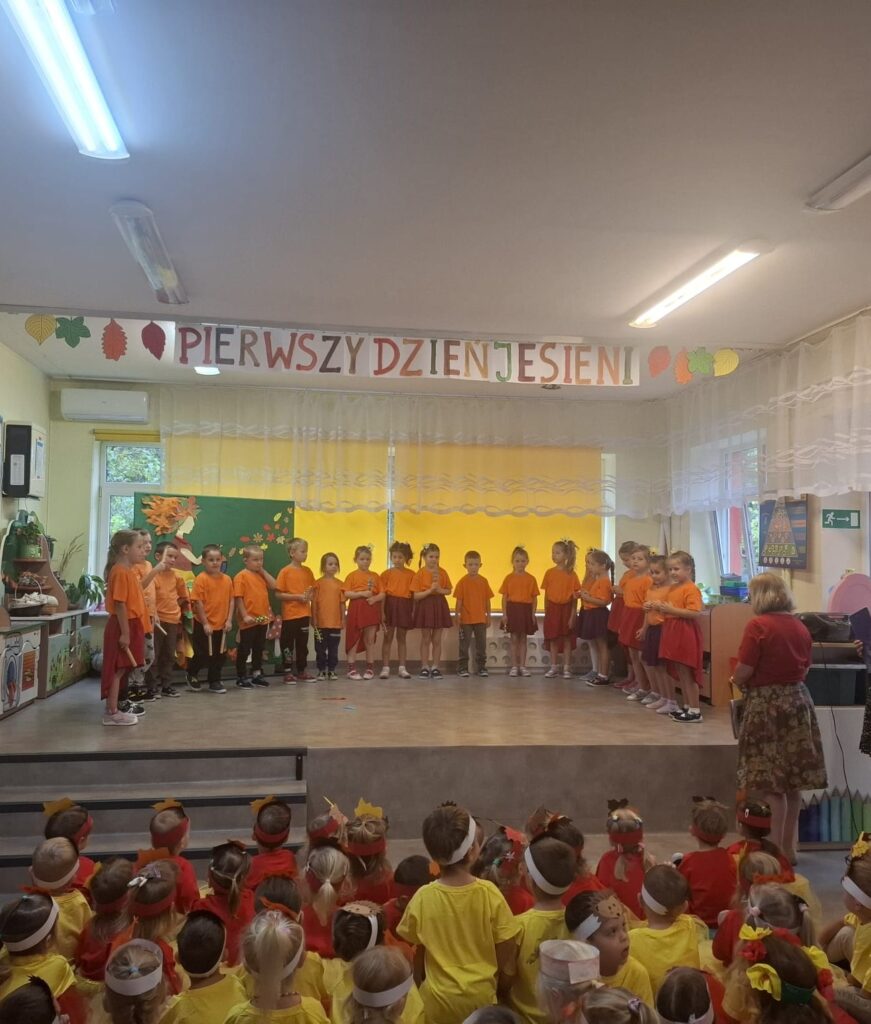 Dzisiaj nasze przedszkolaki przywitały Jesień piosenkami, tańcami, wierszykami i graniem na instrumentach podczas festiwalu artystycznego „Pierwszy Dzień Jesieni”. Nasi mali artyści nie tylko zaśpiewali i zatańczyli ale także pięknie wyglądali. Było u nas tak kolorowo jak na tą porę roku przystało- widać że to już Jesień. Zachęcamy do obejrzenia zdjęć z tego wydarzenia.