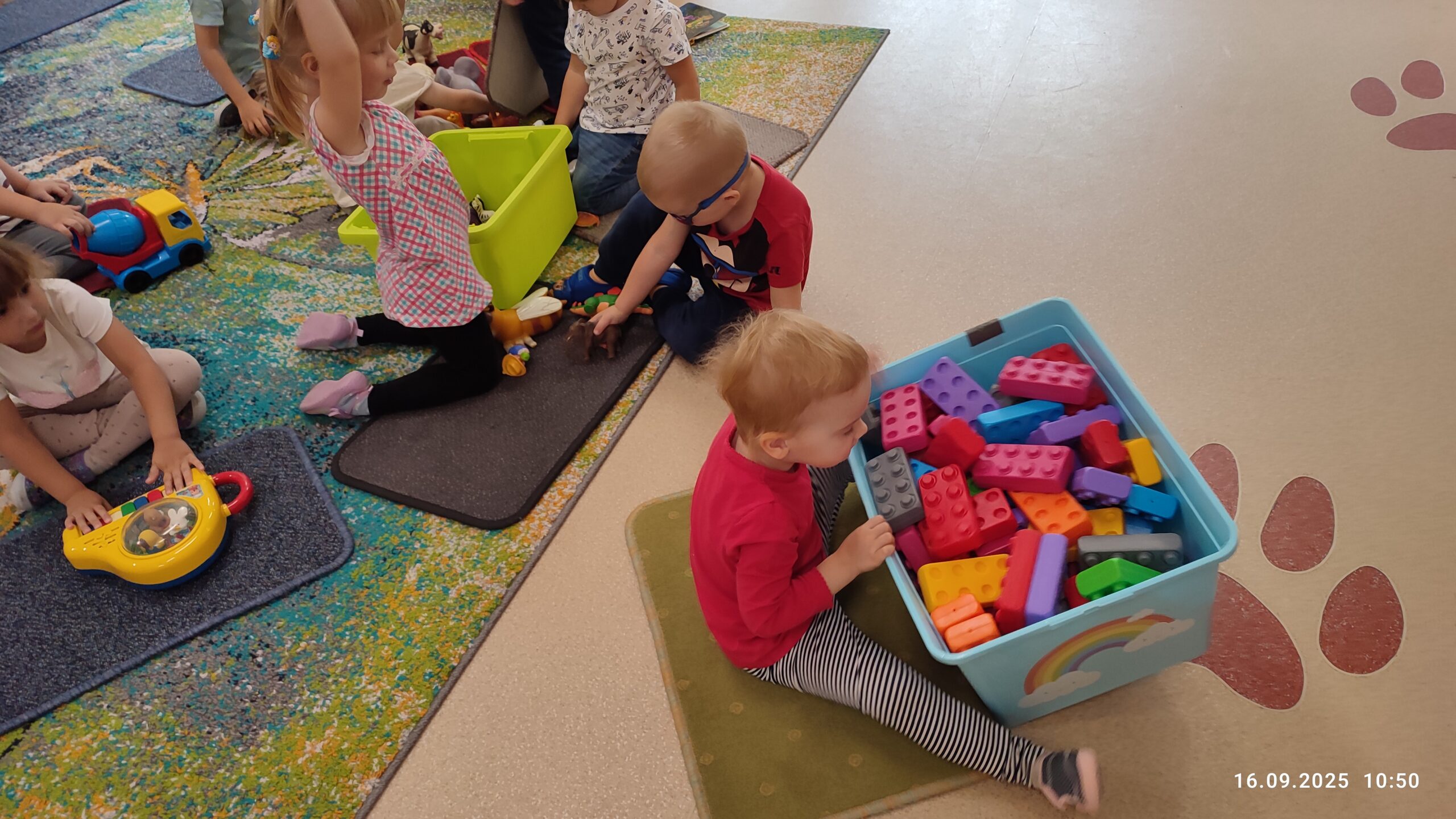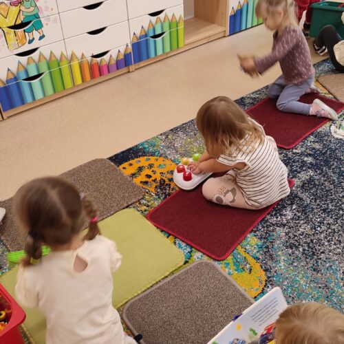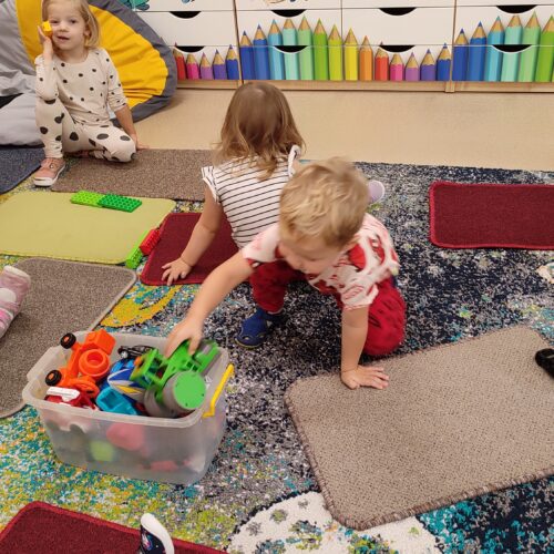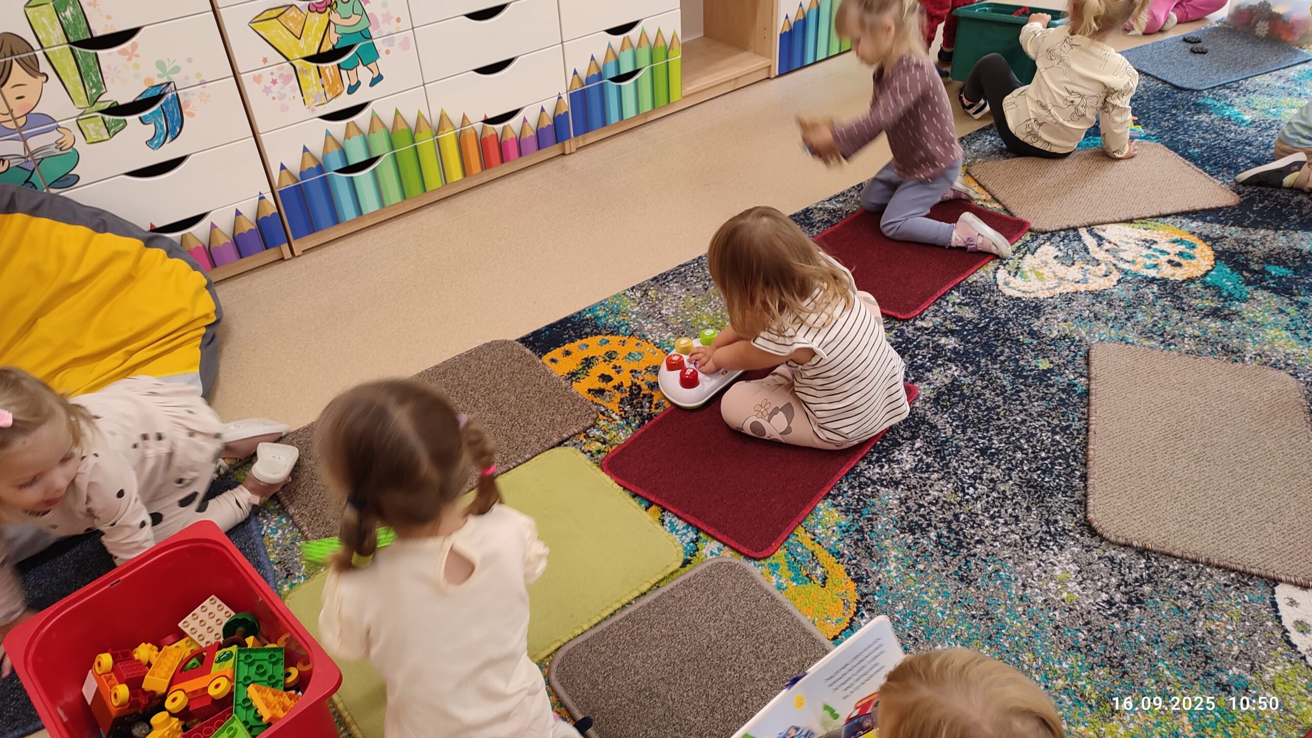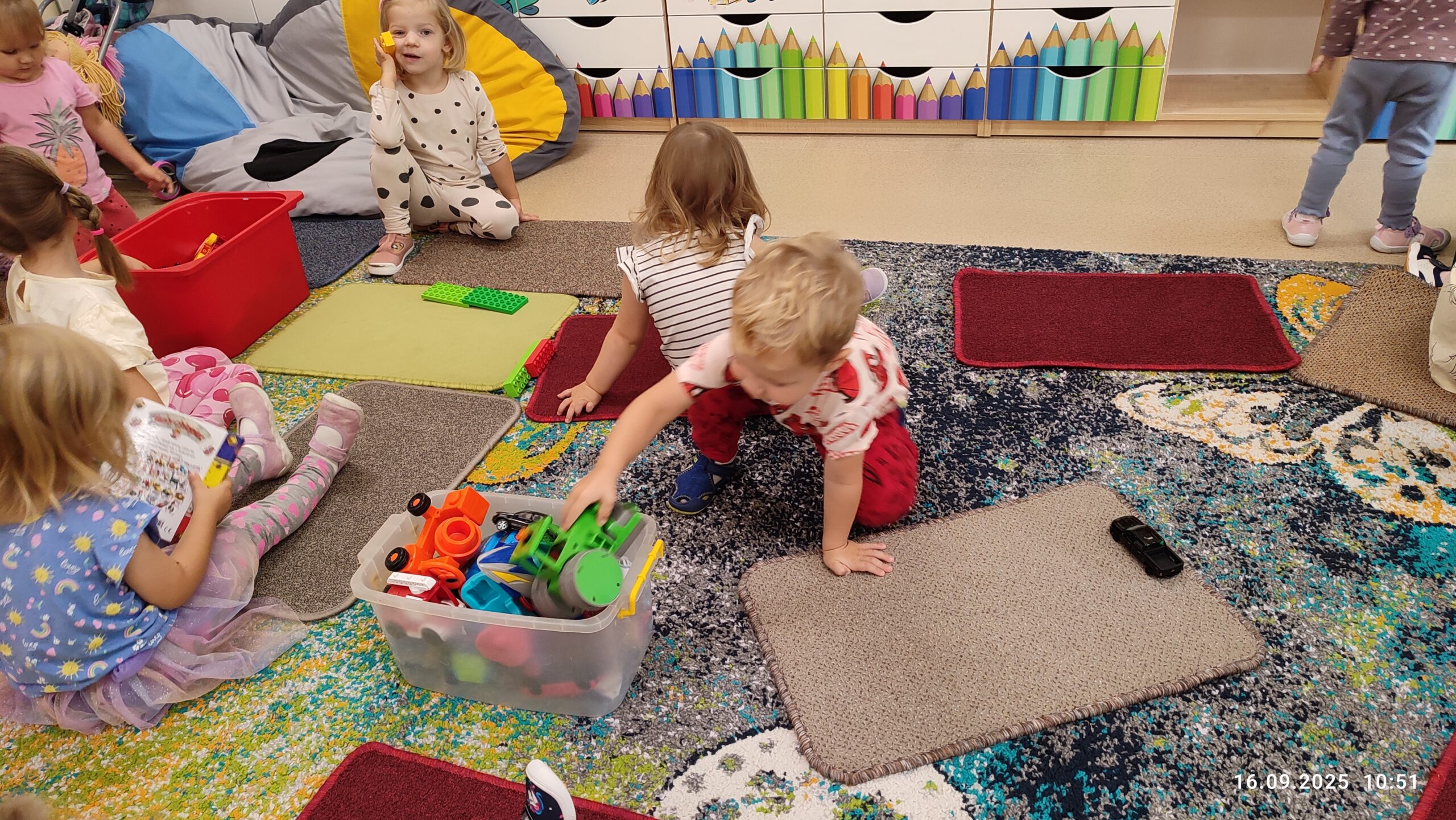 Uczymy się korzystać z dywaników. Na nich budujemy i robimy różne ciekawe rzeczy. A potem łatwo jest posprzątać.