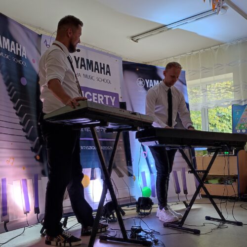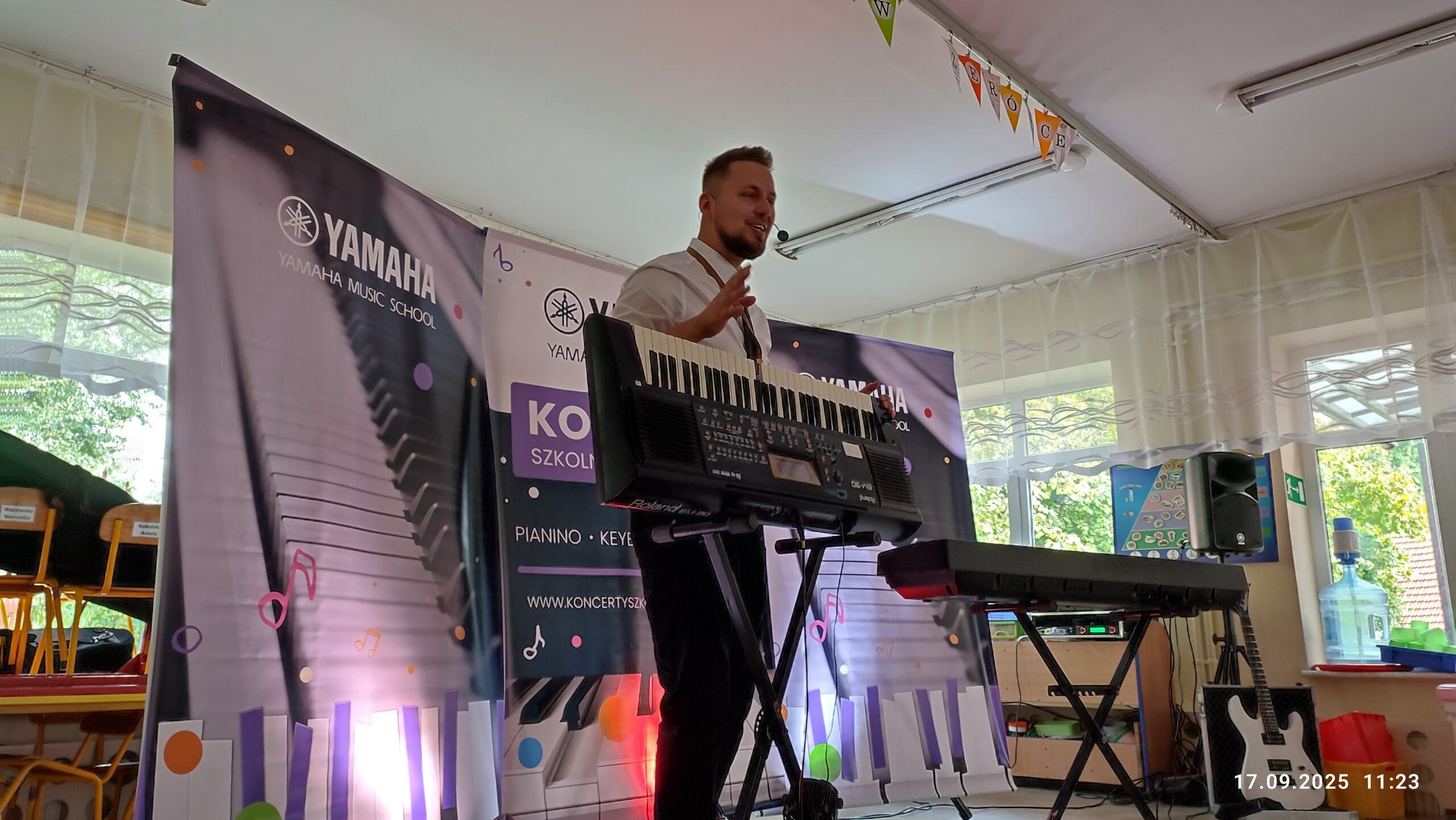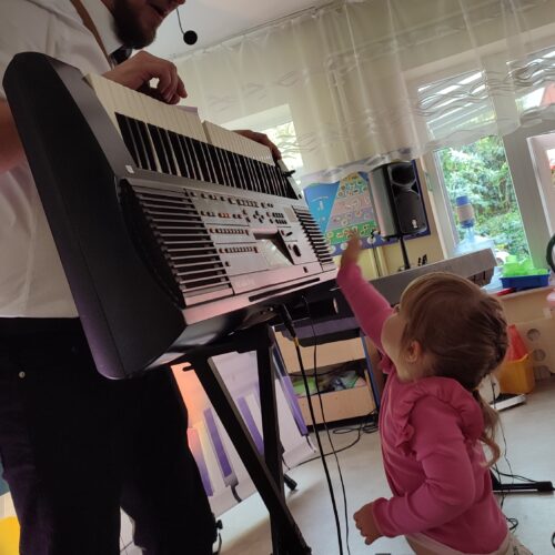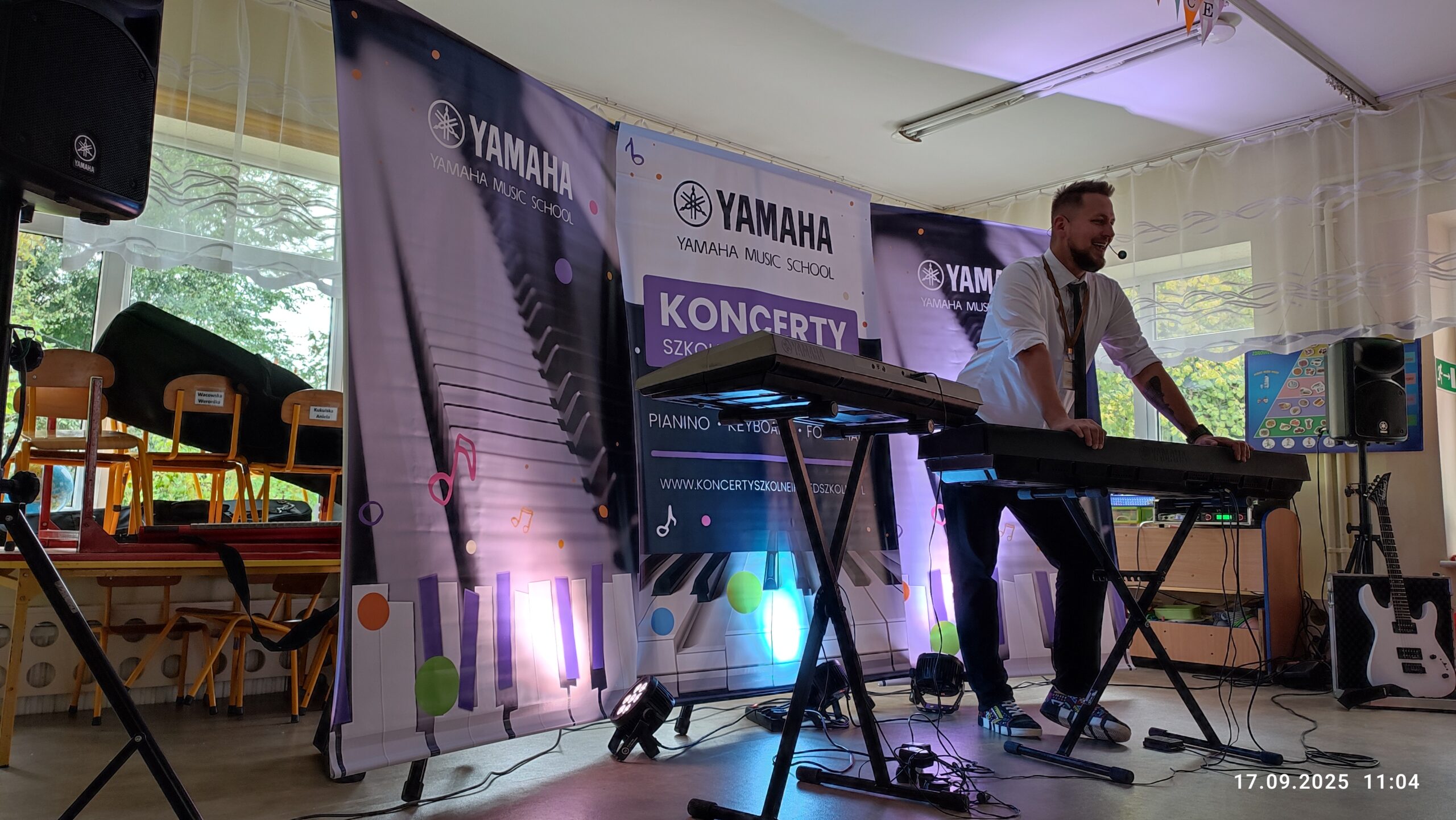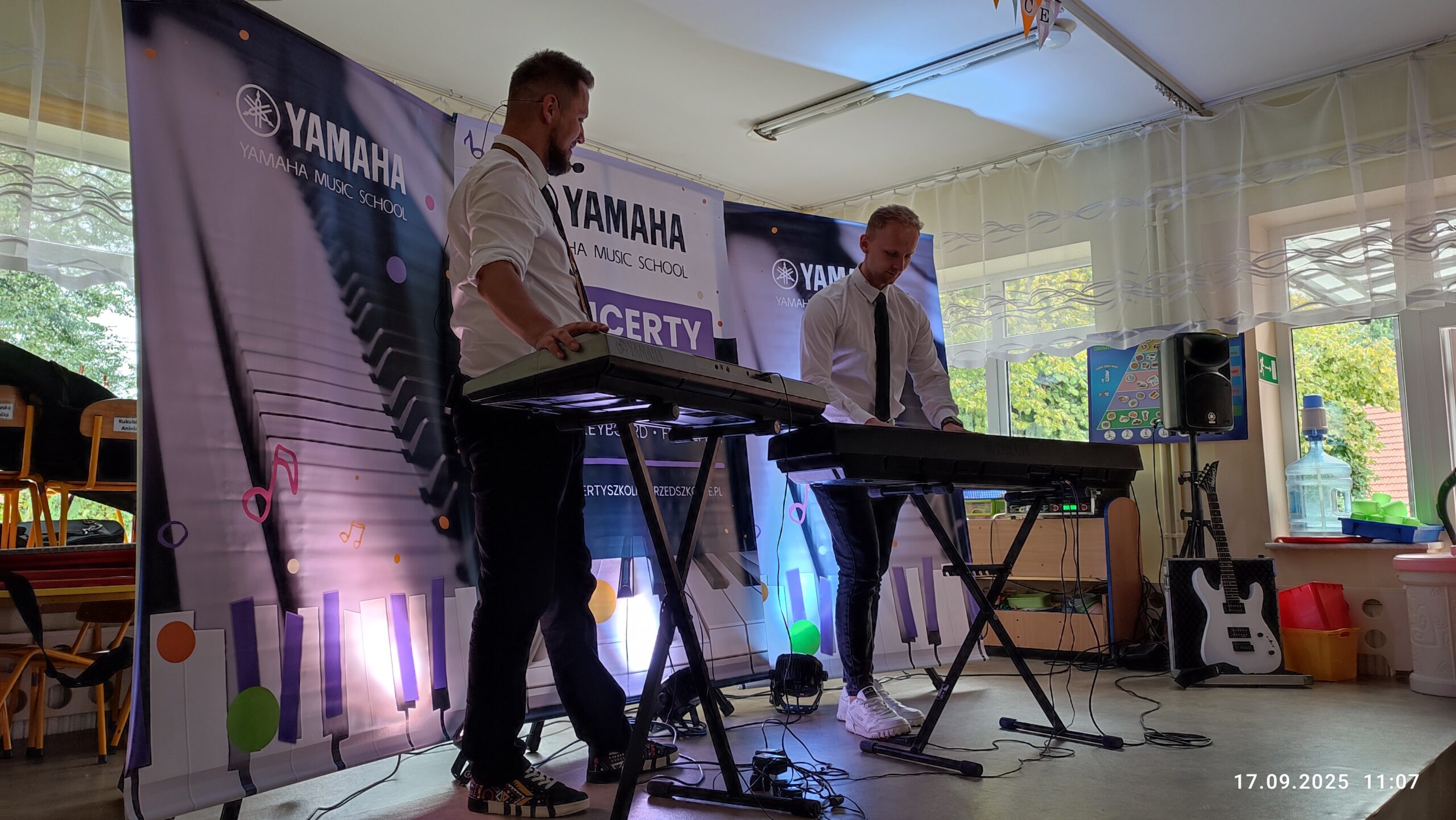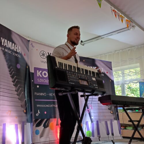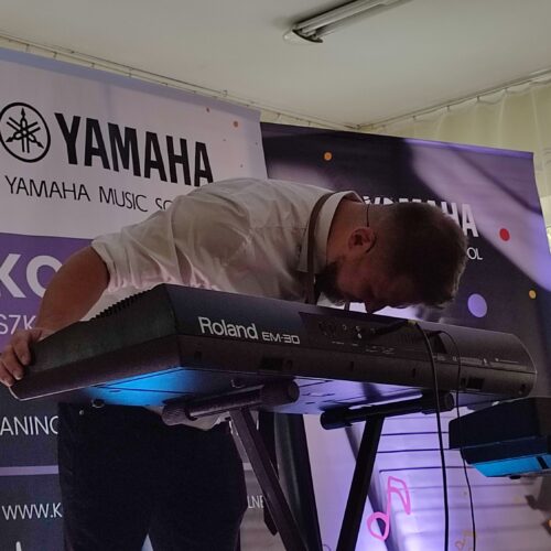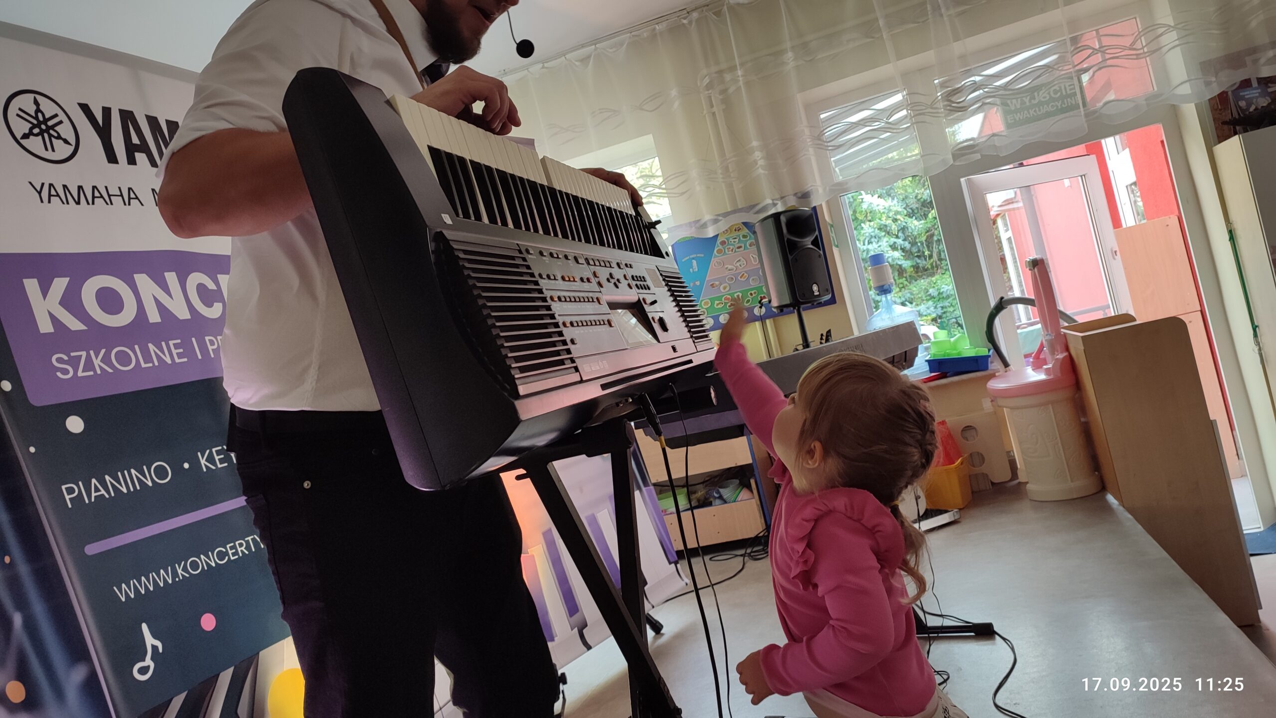 Dzisiaj mieliśmy w przedszkolu koncert muzyków ze Szkoły Muzycznej Yamaha. Poznaliśmy rodzinę instrumentów klawiszowych, między innymi pianino cyfrowe, kibord, syntezator oraz kitar. Mogliśmy nawet zagrać!