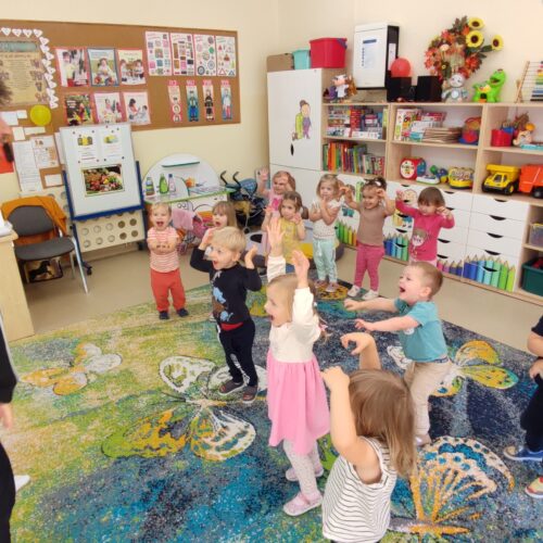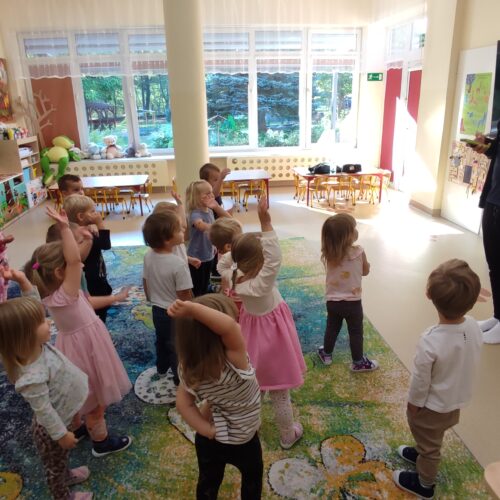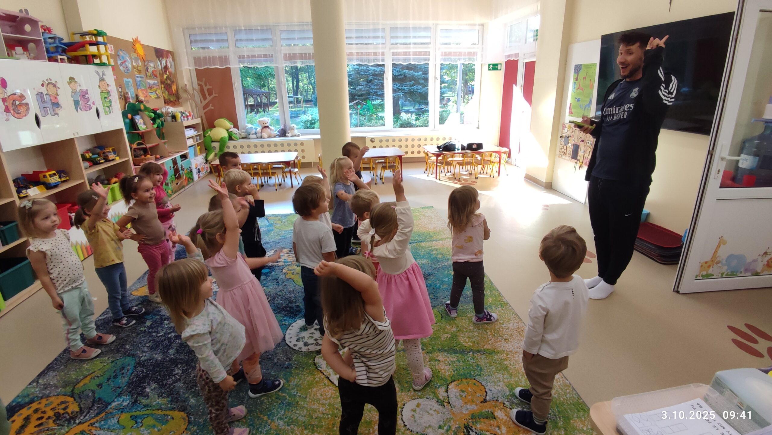 Zumba to zajęcia taneczne, które łączą proste układy taneczne z zabawą, po to, aby zachęcić dzieci do ruchu. Zajęcia mają na celu wspieranie rozwoju fizycznego oraz społecznego. Dlatego w naszym przedszkolu w tym roku rozpoczęły się właśnie zajęcia z Zumby, w których biorą udział wszystkie dzieci – Czerwone Smoki ma się rozumieć też! Zajęcia poprowadził pan Kamil, który od razu porwał dzieci do zabawy – bardzo chętnie wykonywały polecenia instruktora, bawiąc się przy wesołej muzyce. Zumba promuje zdrowy tryb życia u dzieci, podczas takich zajęć maluchy uczą się nie tylko tańca, ale i również koordynacji, równowagi oraz ćwiczą pamięć. To były wyczerpujące, ale pełne pozytywnej energii zajęcia.