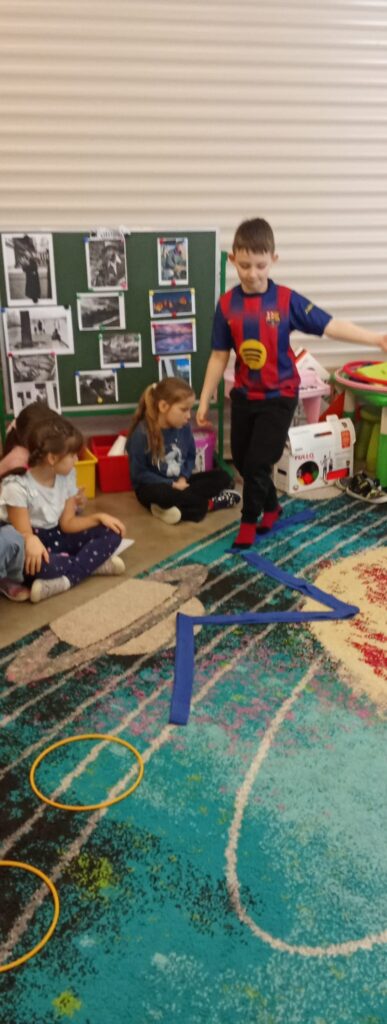 Piątek- tydzień projektowy zakończyliśmy zadaniem nr 12: “Tor przeszkód” – sztuka i sport to zgrany duet. Zorganizujcie tor przeszkód, niech poszczególne stacje oprócz aktywności fizycznych będą miały stanowiska z zadaniami związanymi ze sztuką. Możecie do tego wykorzystać quiz wiedzy.