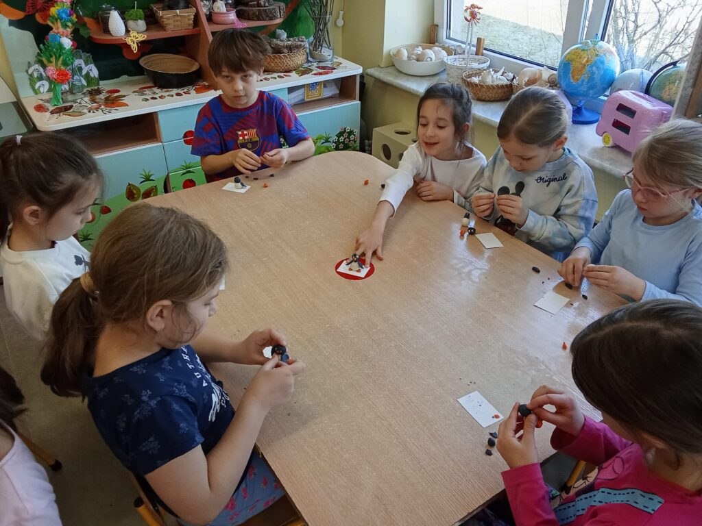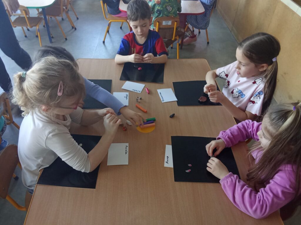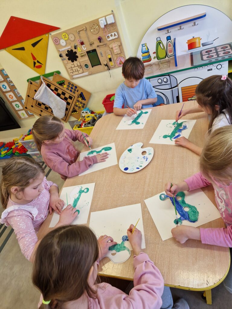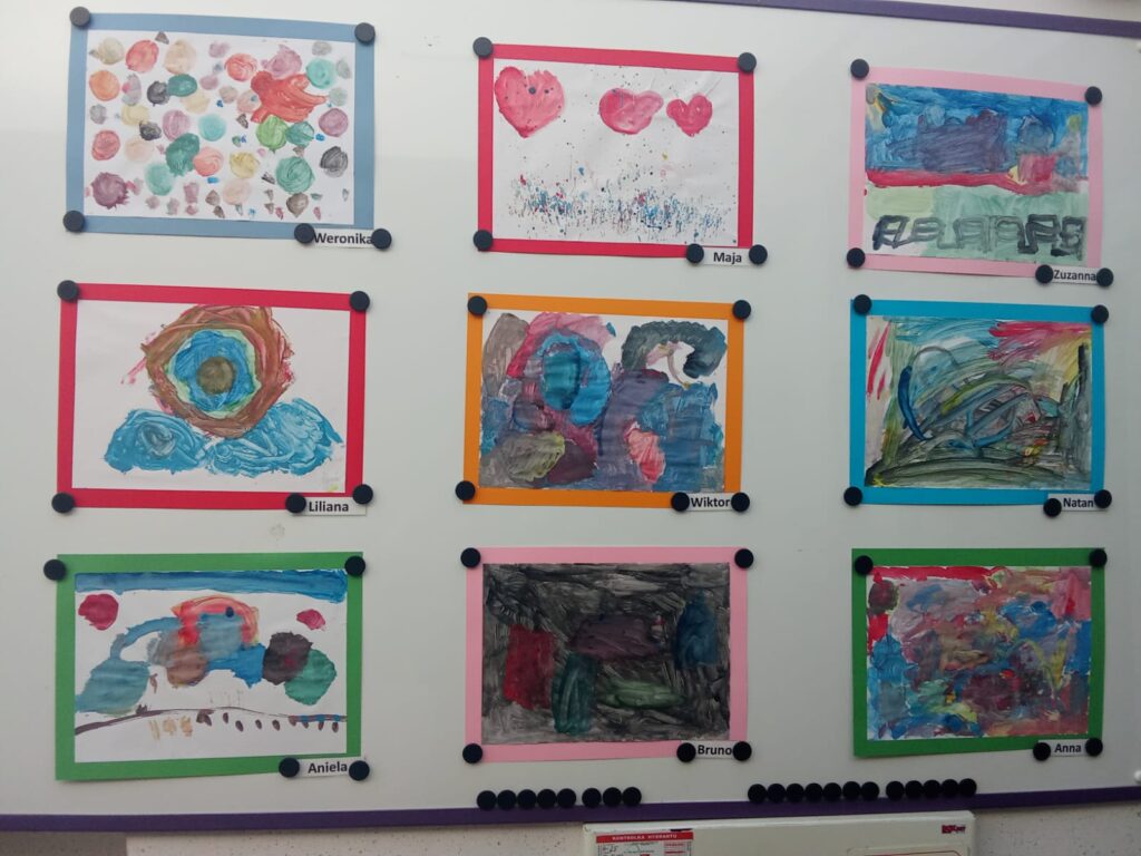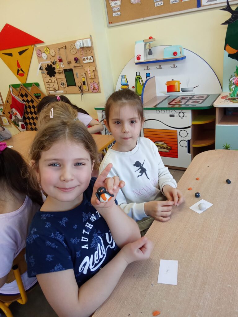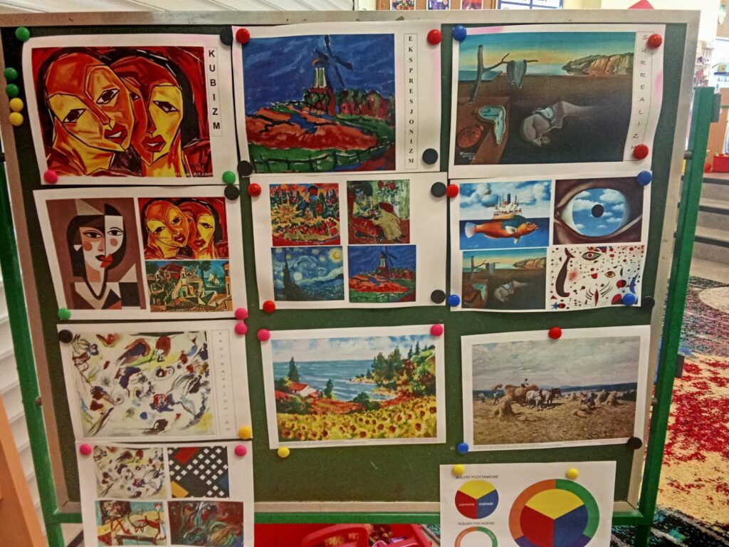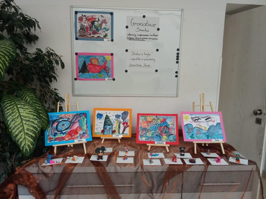 Granatowe Smoki zapoznały się ze światem sztuki na początku zostali malarzami bawiąc się różnymi kierunkami (kubizm, ekspresjonizm, surrealizm, abstrakcjonizm) stworzyli swoje unikatowe dzieła by na koniec zostać rzeźbiarzami i ulepić z plasteliny swoją ulubioną postać z bajki. Zachęcamy do oglądania naszej twórczości w holu:)