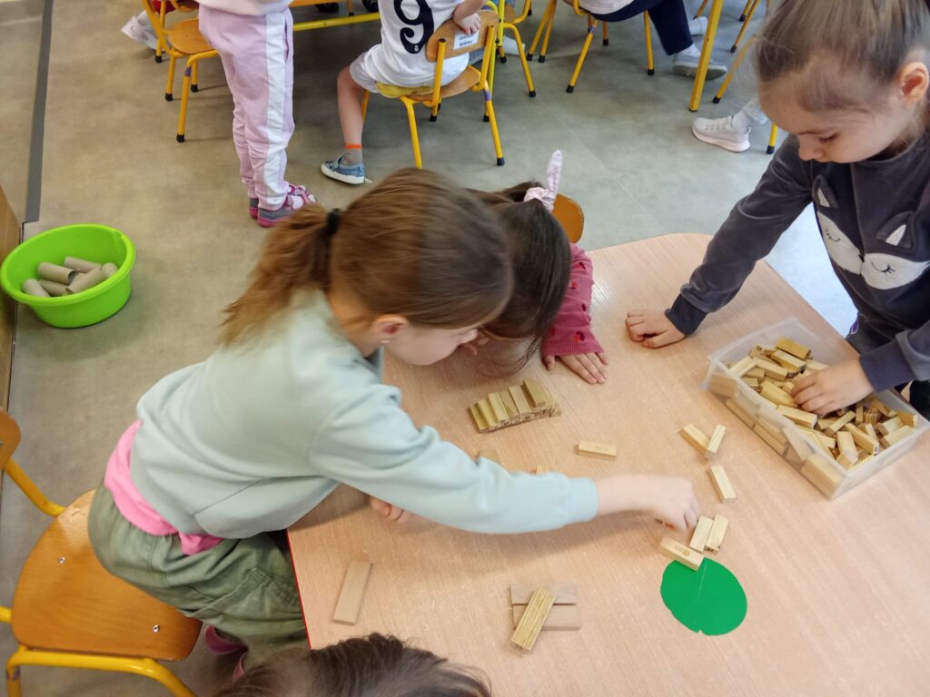 „Zamki”- Wspólne budowanie, zabawa w grupach z wykorzystaniem różnych rodzaju klocków; cel: Rozwijanie umiejętności współpracy i negocjacji.