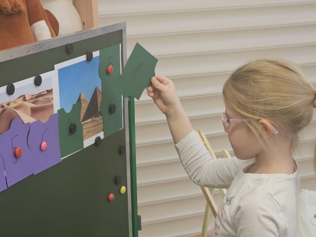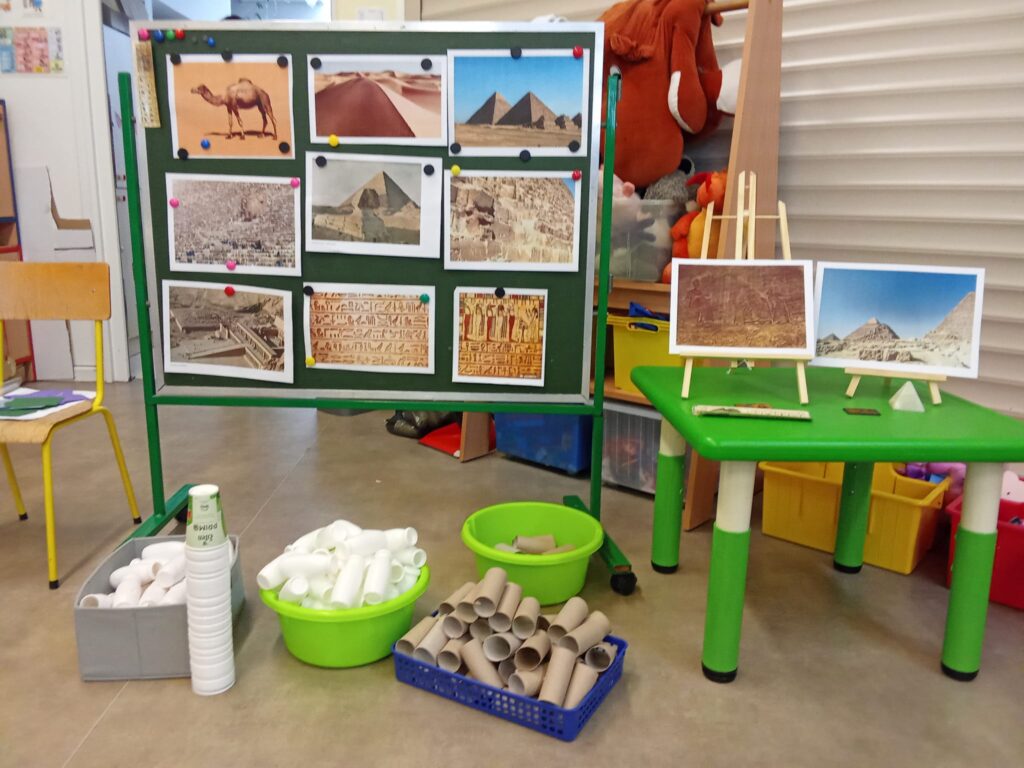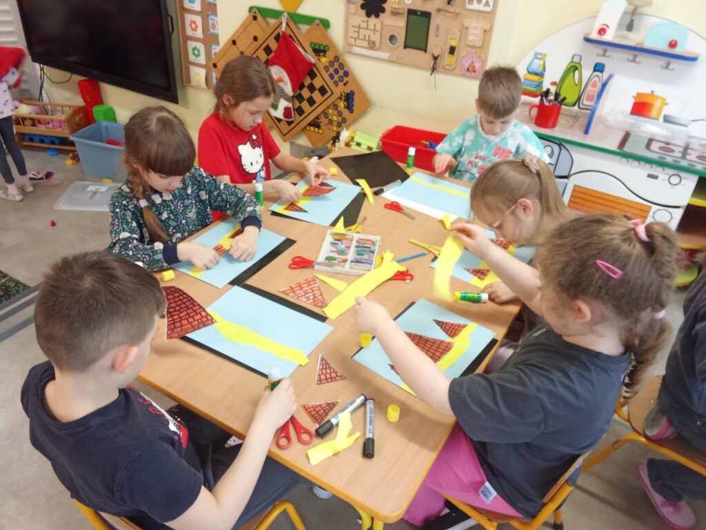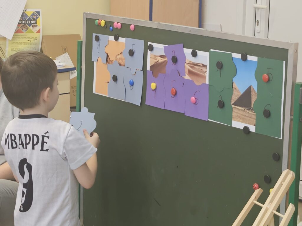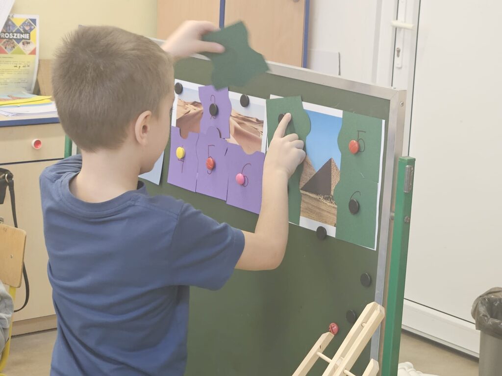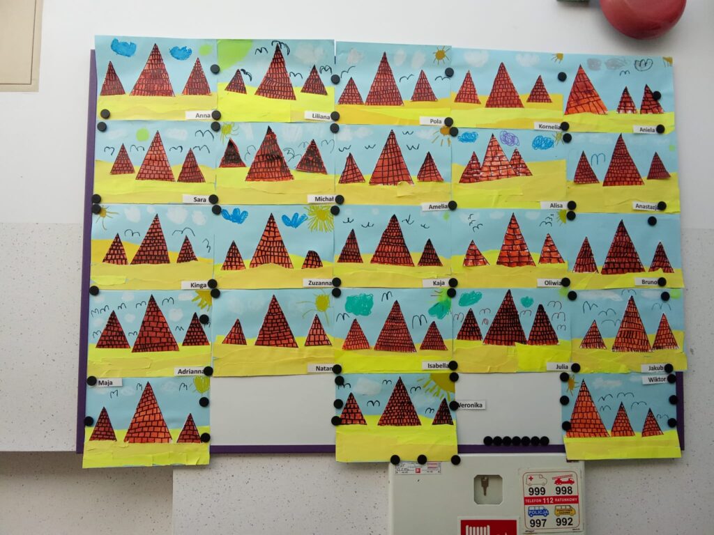b) “Piramidy” – poznajcie historię piramid, następnie zbudujcie własne np.przy użyciu klocków, pudełek, kostek cukru itd. oraz wykonajcie pracę plastyczną „Piramidy”