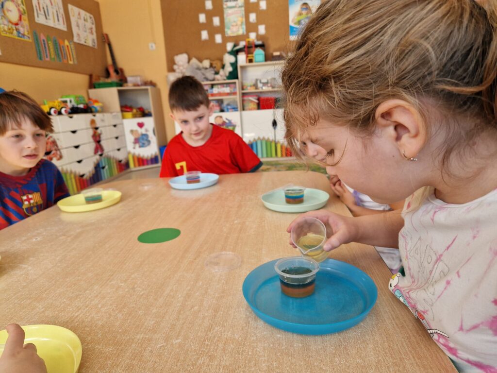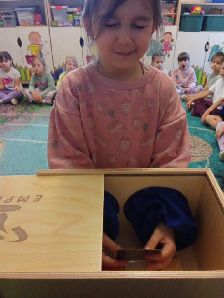 b) Zabawa badawcza: „Co pływa, co tonie?