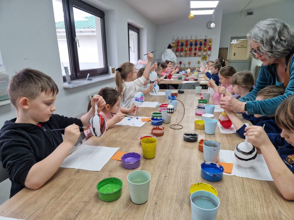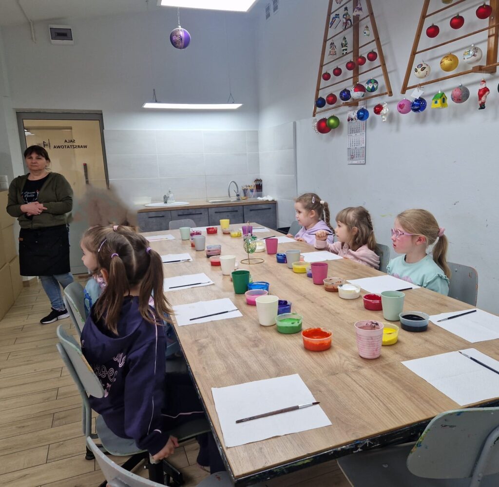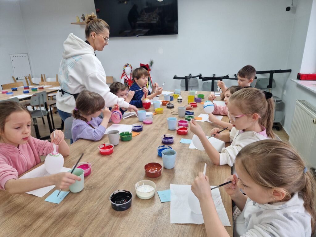 Wycieczka do fabryki bombek w Wieliczce- malowanie szklanych jajek i zabawa w sali zabaw.