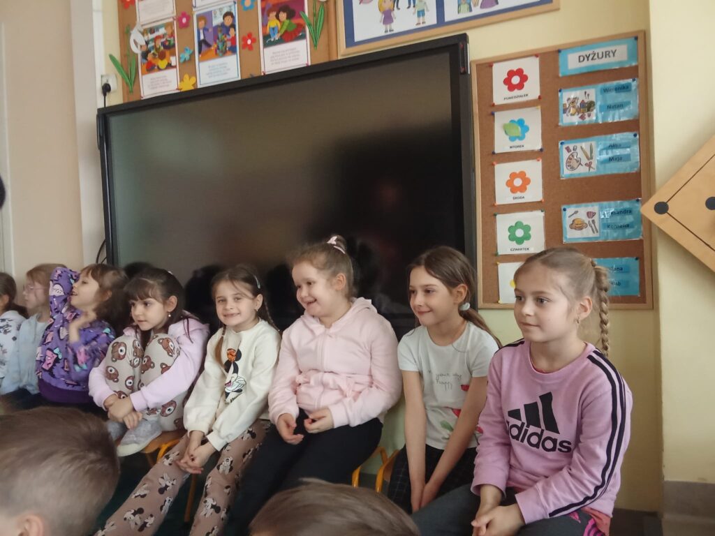 Swoimi spostrzeżeniami podzieli się również: Kinga- ile czasu powino spędzać dziecko przy telefonie, Amelka- ciekawe historie kota Petardy, Julka opowiedziała o chomiku, Anielka o swoim ukochanym piesku, Michał o piłce nożnej i Ronaldo a Ola podzieliła się informacjami o balonach.