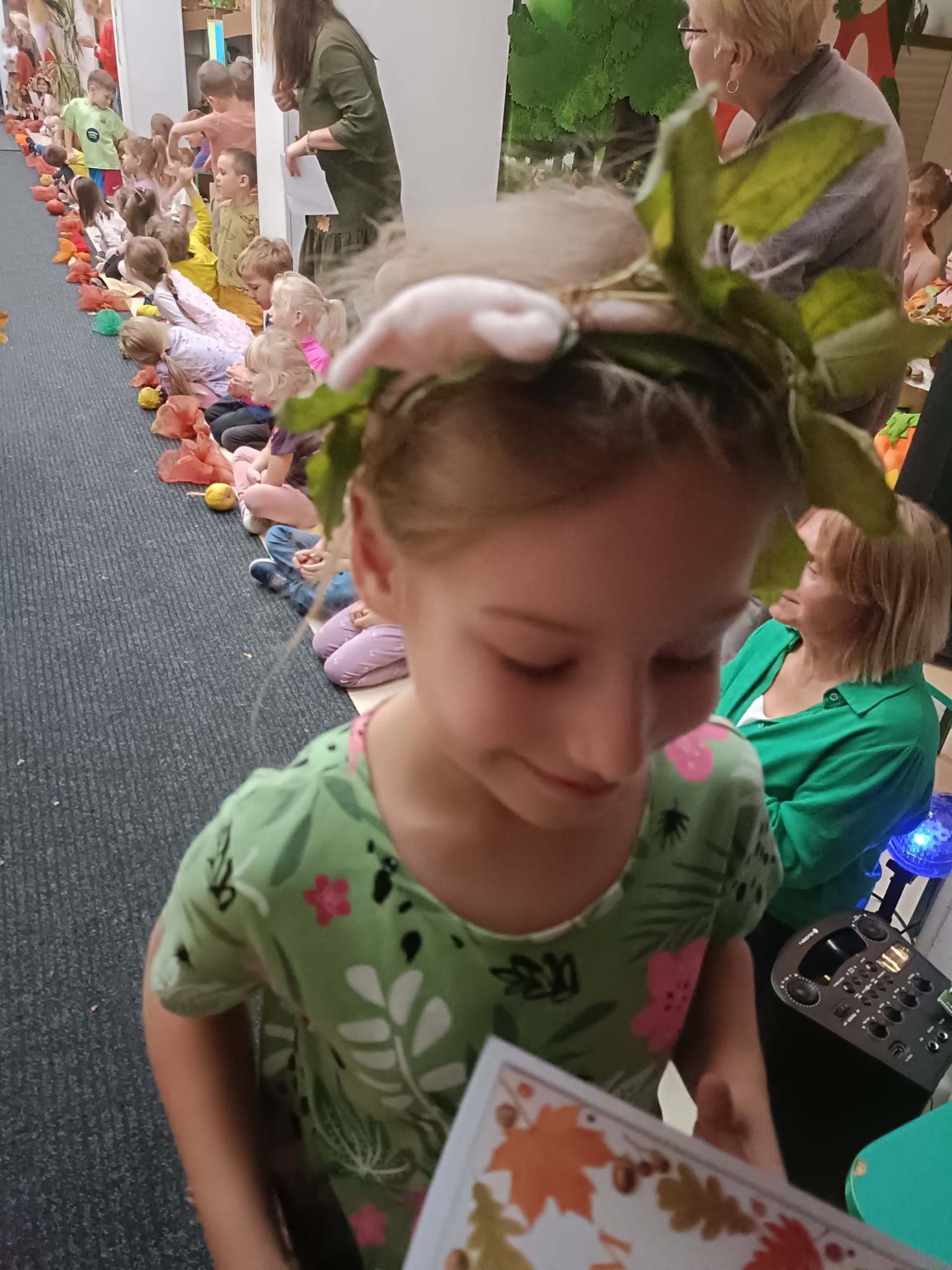 uszy z liści ozdobią głowę.