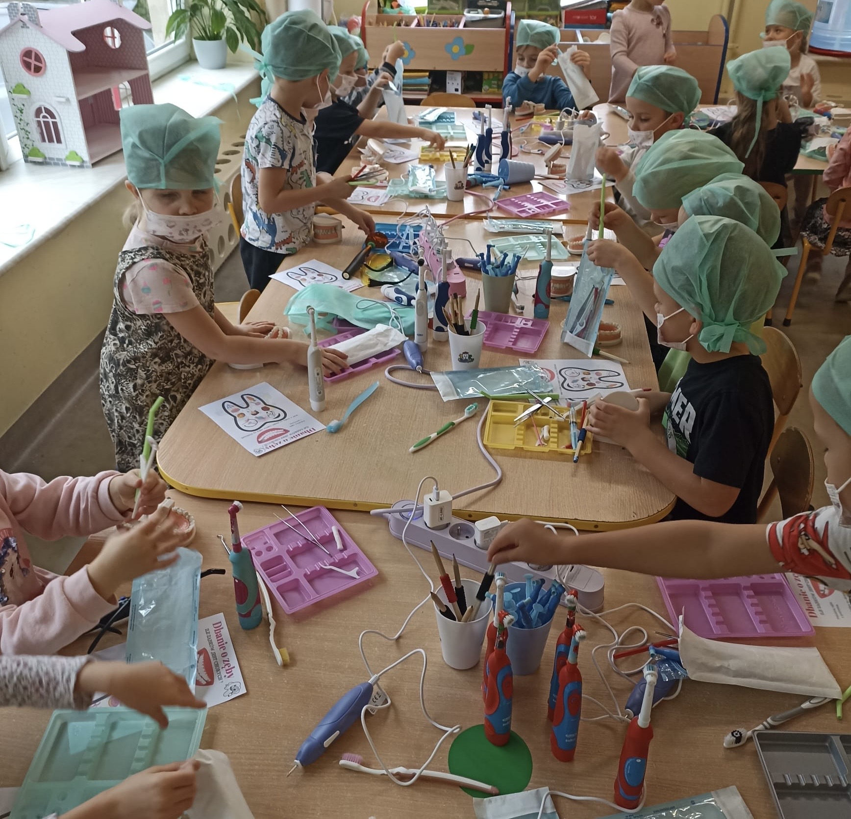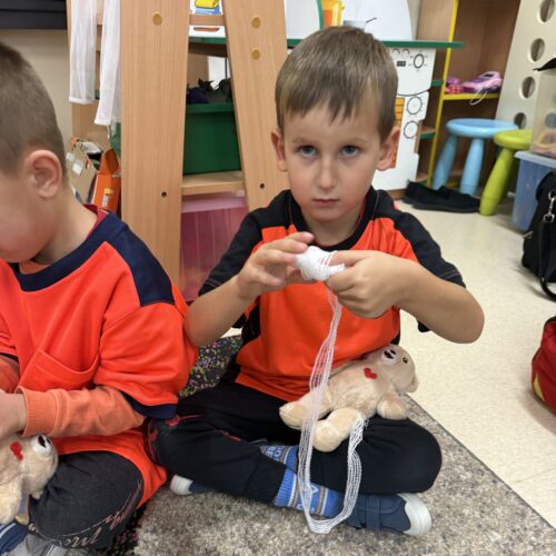 I kolejny Piknik Rodzinny za nami. Ten odbył się pod hasłem „Bo najlepiej jest z Rodziną”. Choć pogoda nieźle nas wystraszyła popołudniową ulewą. Na szczęście nasze zamówienie na pogodę nie zostało anulowane. Każda grupa włożyła swój niepowtarzalny wkład w występ dla rodziców, dzieci zaprezentowały się znakomicie. Po występach na gości czekały różne atrakcje: dmuchane zamki, spotkanie z Policją, Strażą Pożarną i Strażą Miejską. Można było pomalować sobie buźkę, dostać zwierzątko z balonika, wziąć udział w zawodach sportowych, albo kupić los w loterii. Była wata cukrowa, popcorn, a jeśli ktoś zgłodniał, mógł posilić się w kawiarence kiełbaską, pysznym ciastem, albo smakołykami na stoisku z daniami ukraińskimi. A – bo tegoroczny Piknik miał też ważną ideę jaką była integracja z Ukrainą. Dlatego też wszyscy razem mogli śpiewać, bawić się na przykład robiąc wspólnie flagi obu narodów, korale w barwach narodowych czy układać puzzle.